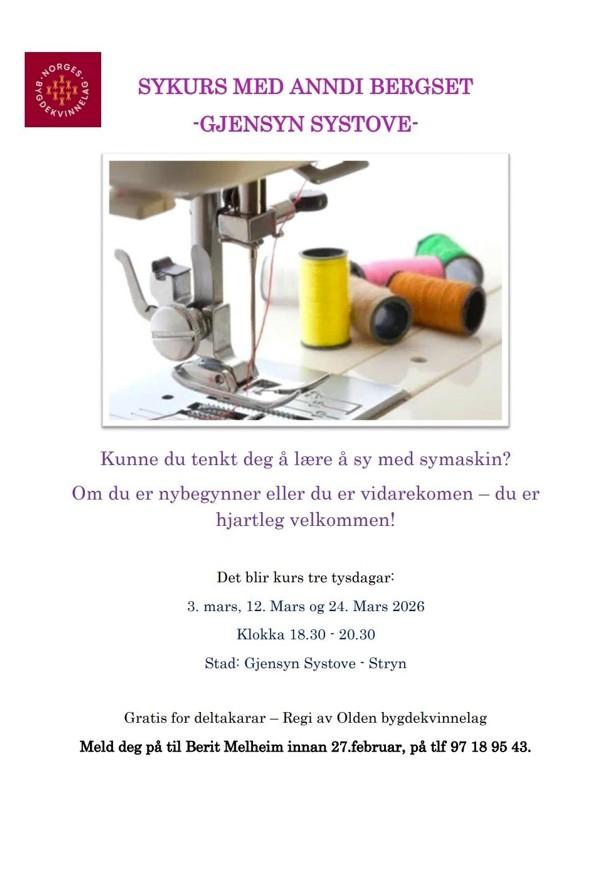 Olden bygdekvinnelag arrangerar sykurs med Anndi Bergset på Gjensyn i Stryn.